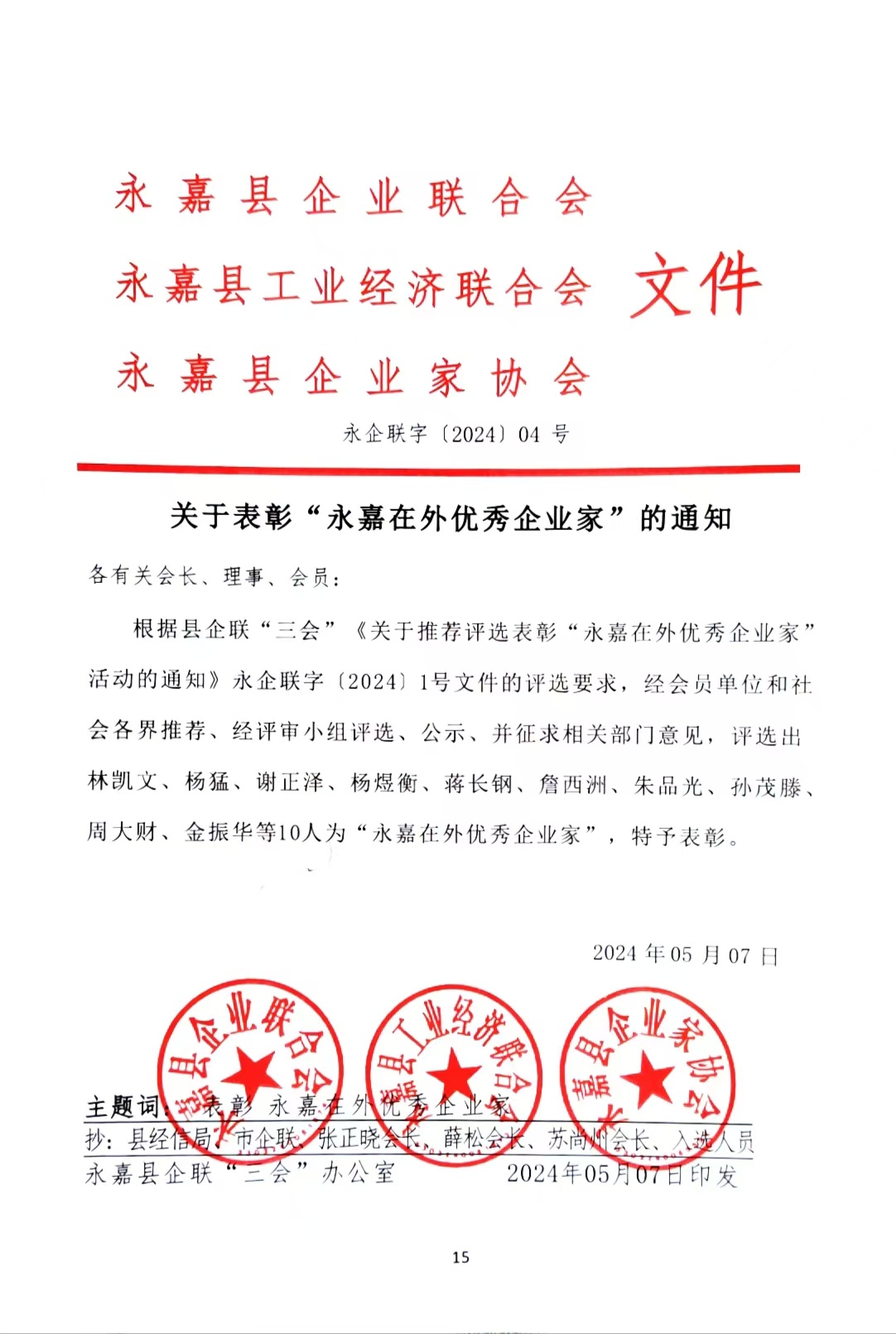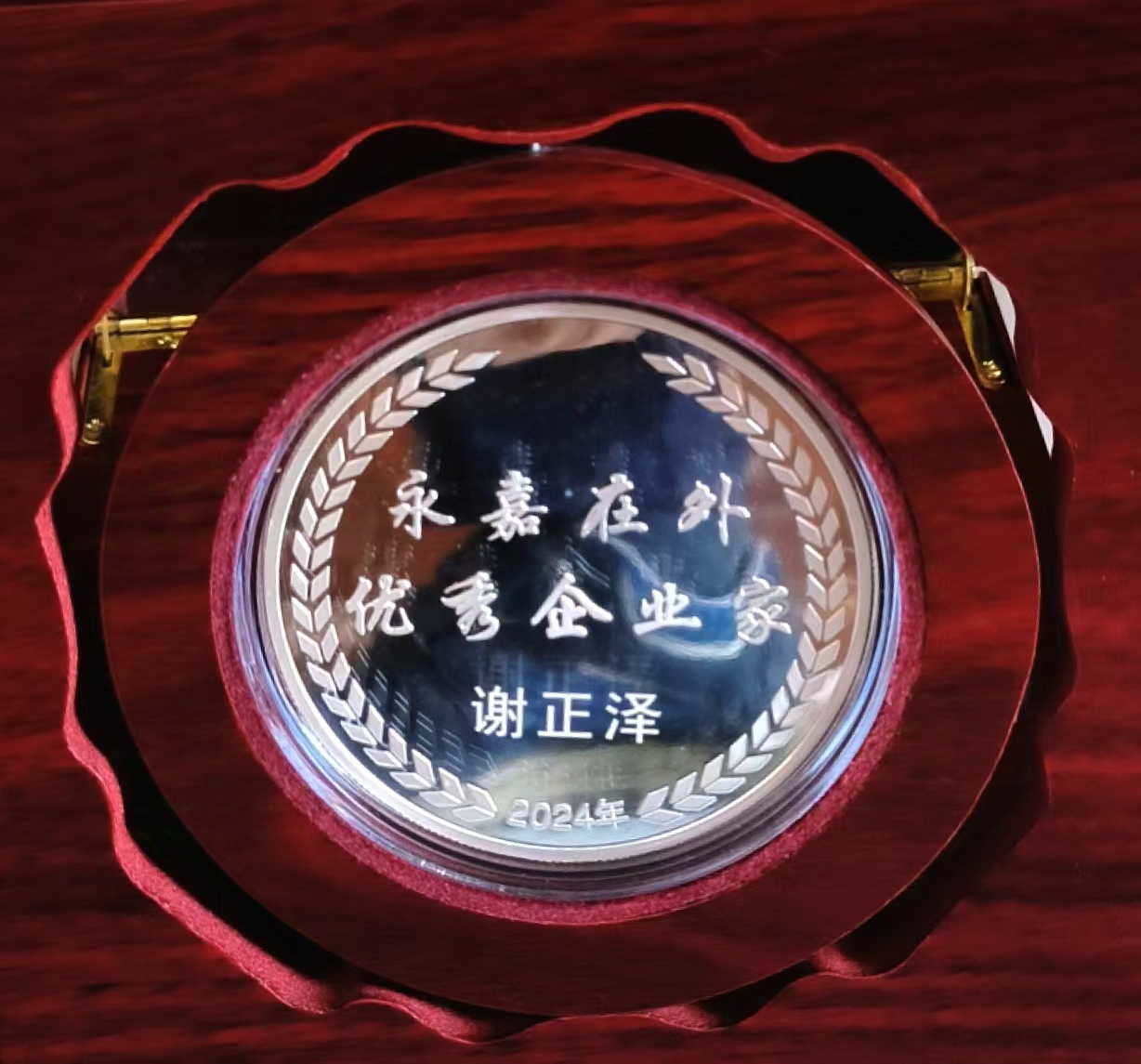 热烈祝贺我公司董事长谢正泽荣获 “永嘉在外优秀企业家”殊荣